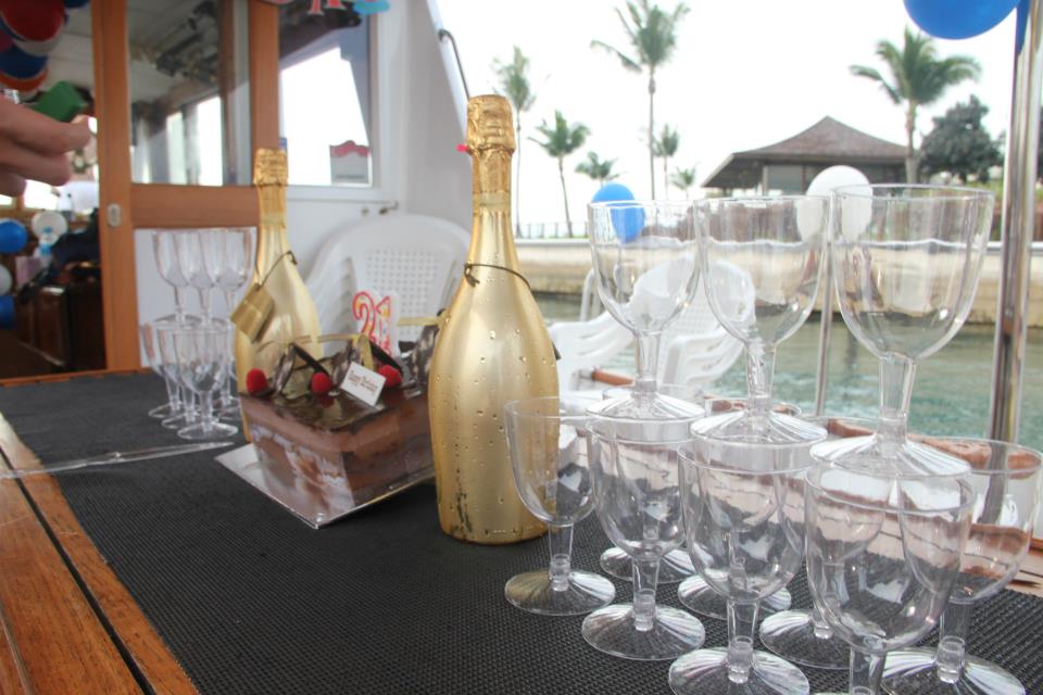 My 21st. (Simple and intimate affair) at 7:01 PMMy 21st bday was a fairly simple one. Couldnt invite ALL of my friends as its a mini yacht party, with a maximum pax of 20 people. Hence, only people in diff cliques were invited. I din really like the idea of a chalet/hotel party as 1. its too boring 2. the nice hotels dun really allow parties (my bf's bday party was held in a very nice suite, but the service was HORRENDOUS, no names shall be mentioned) 3. i dun wanna put people thru the I-dunno-her-well, and-I-dunno-what-to-get-for-her dilemma. 4. awkward situations (because not everyone know each other well, and i prefer to invite my friends in CLIQUES, so that they wont feel left out if Im too busy to entertain them) So the idea of a chalet (yucks) and hotel party was aborted. I remembered whenever my friends asked me if im hosting a party, I was quite negative about it. Till I had a crazy idea of hosting a yacht party. Found some deals about chartering a yacht for 4hrs etc etc, till I found this yacht (not very atas tho) at a steal. Instead of a 4hrs affair, he gave me 5hrs. and a package for food and drinks (save the hassle of troubling myself what to buy and all), there were ppl on board to help us with the barbequeing.